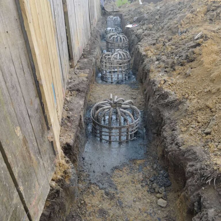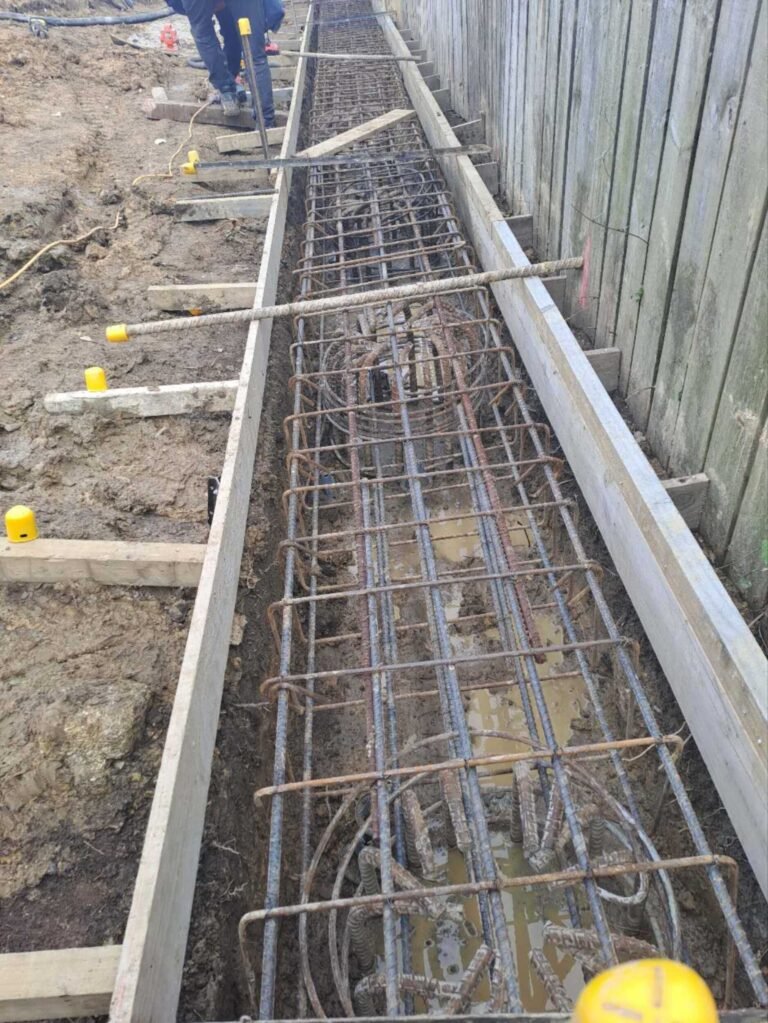 Twelve-metre round, steel-reinforced cages were prefabricated off-site and transported to the rest home. The team carefully manoeuvred the long steel cages into place with precision, followed by the formation of concrete piles. Capping beams were then constructed over the steel cages to enhance structural integrity and reduce the risk of future landslips.