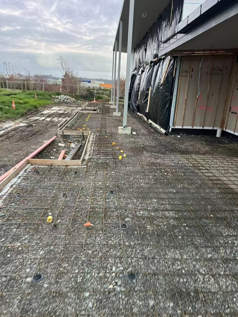 The scope of works included driveway preparation, asphalt surfacing, exposed aggregate concrete paths, kerb and channel installation, and topsoil placement. Each element was delivered with care and attention to detail, creating a seamless transition between the built form and the natural setting.